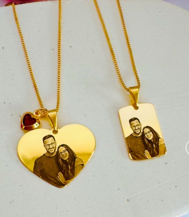• Colar feminino em formato de coração para gravar foto ou homenagem.